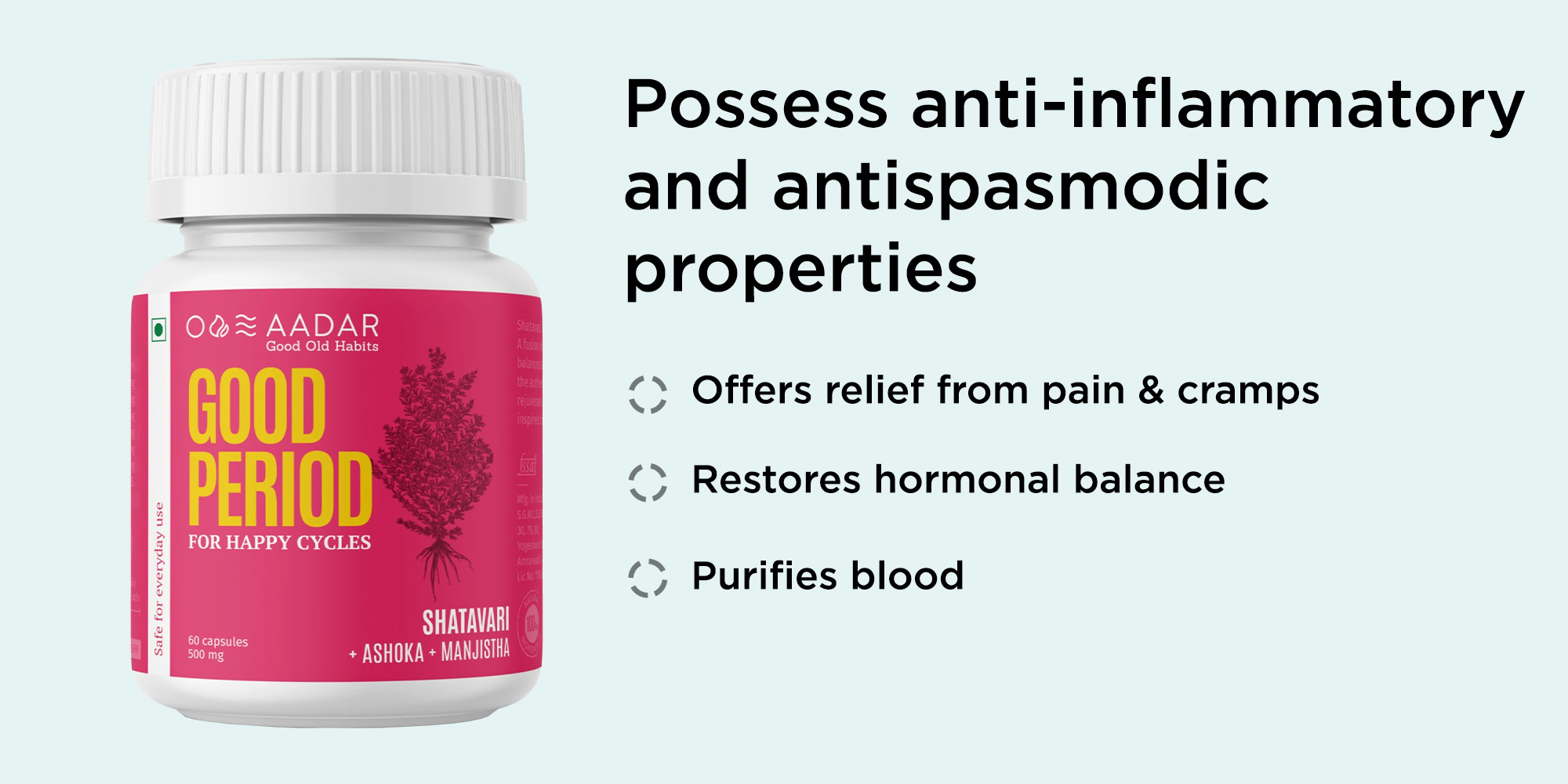 Menstruating women often face a multitude of problems like painful periods, cramp aches and mood swings. These conditions affect their overall well being, family and social life and work productivity. To avoid these complications, you can consider the goodness of potent herbal supplements like Good Periods. It consists of a powerful combination of Ayurvedic herbs like Shatavari, Ashoka, and Manjistha. All these herbs have used since ages to help women regularize their menstrual cycle, ease the accompanying pain and address their mood swings.