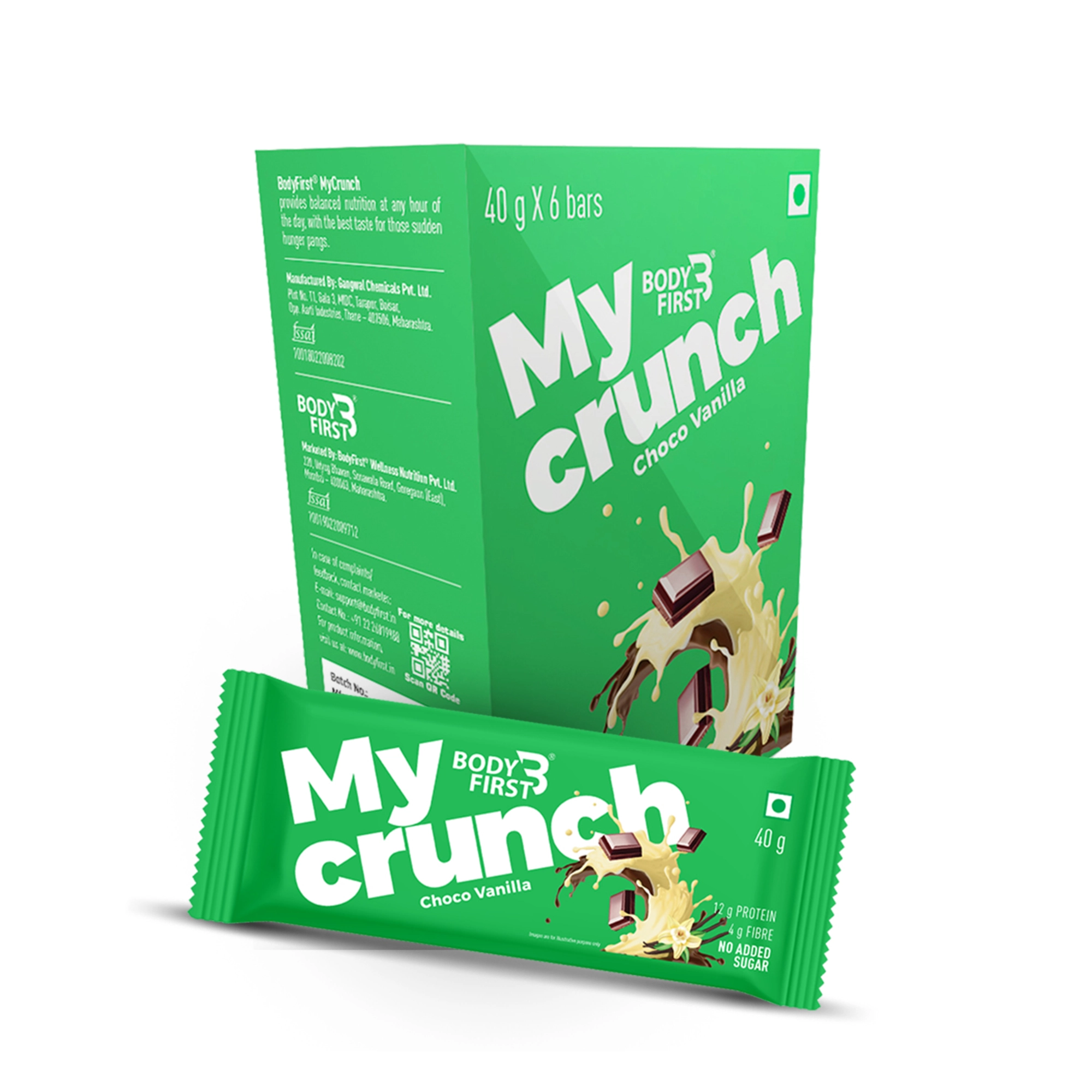 BodyFirst MyCrunch protein bar is designed to provide balanced nutrition at any hour of the day with the best taste for those sudden hunger pangs.