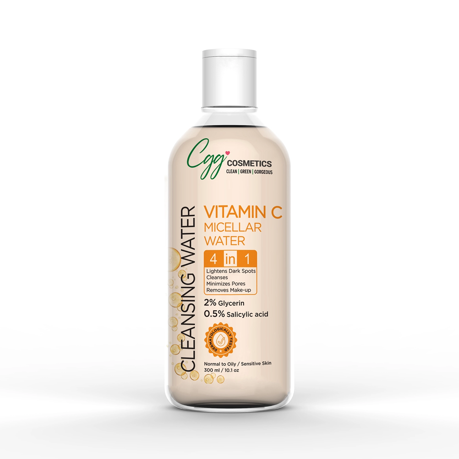 CGG Cosmetics Vitamin C Micellar Cleansing Water 4 In 1 Skin Brightening Removes Makeup & Minimizes Pores With Anti-Aging Formula For All Skin Types - 300ml300ml