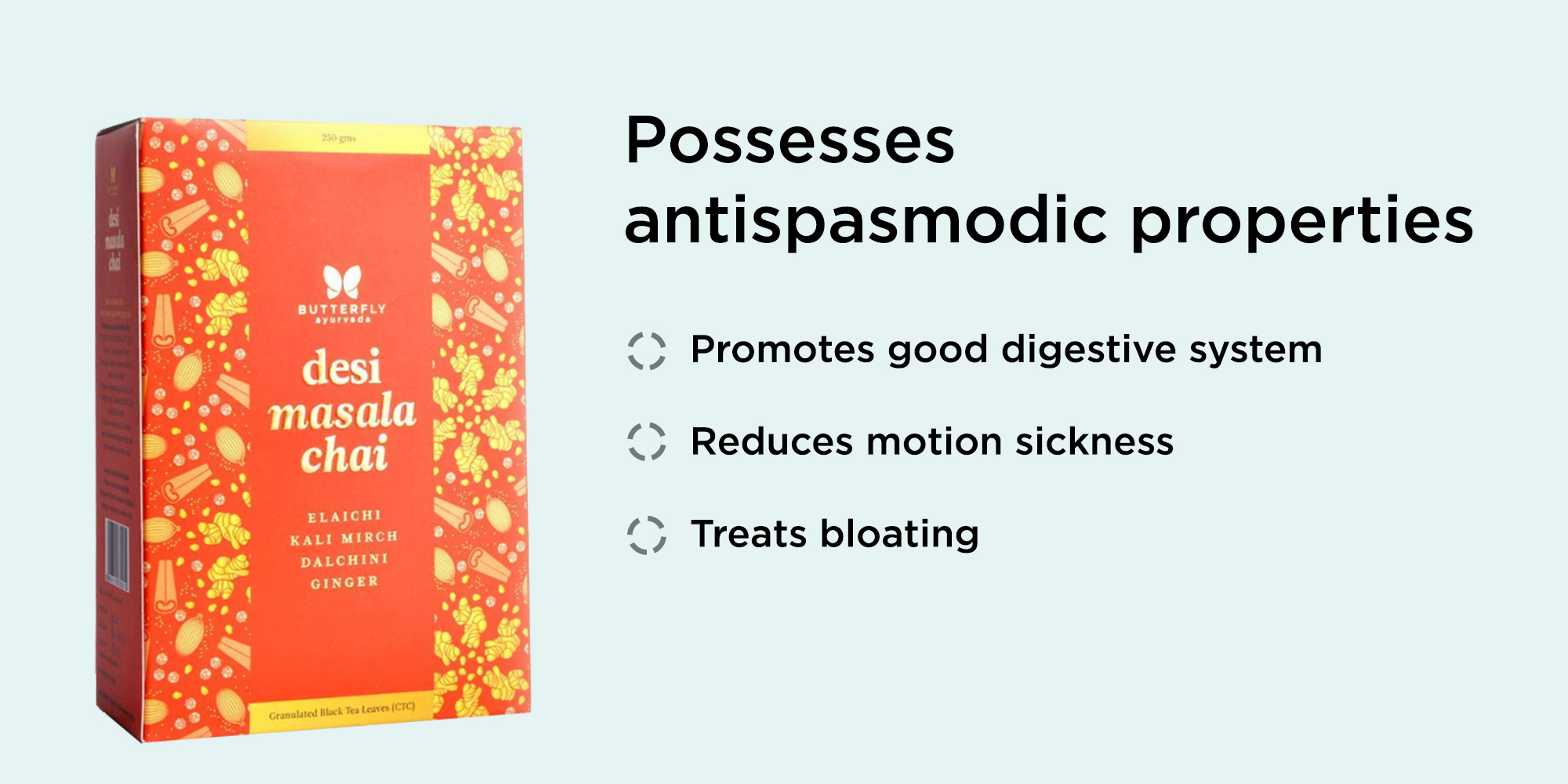 Desi Masala Chai tea bag is a unique blend of Dalchini, Ginger, Elaichi, Kali Mirch and Assam Black tea leaves which helps in keeping you fit and healthy.for a longer period of time. This product does not contain any artificial flavours or chemicals.