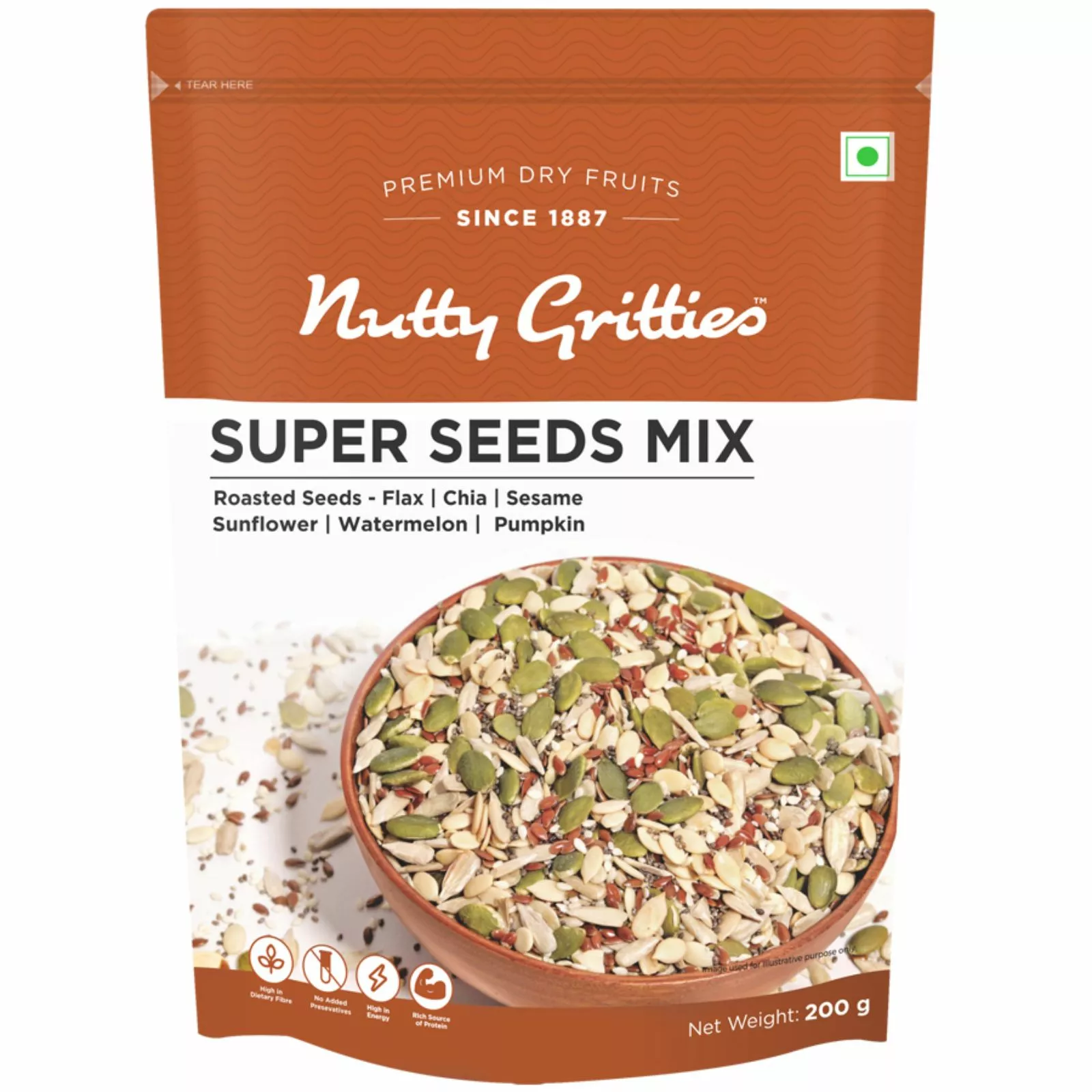 Why Choose Nutty Gritties Super Seeds Mix - Roasted - Flax, Chia, Sesame, Sunflower, Watermelon, Pumpkin Seeds - 200g?