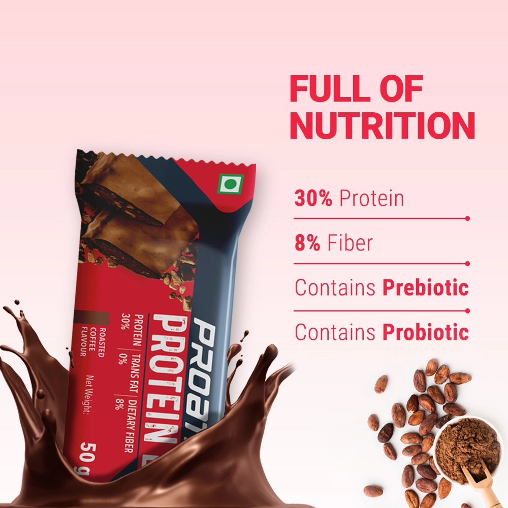 Proathlix Protein Bar is designed to give an instant boost of energy along with a delicious taste. Its gluten, GMO and soy-free and contains flaxseed which boost cardiovascular health. Our product is rich in fibre (pre-biotic) and contains approx. 4 g dietary fibre. Proathlix Protein Bar is made with natural and authentic ingredients like, cocoa powder, multigrain, Whey protein isolate, Whey protein concentrate, Casein protein and many more. Our energy bars are purposefully formulated to deliver the best combination of protein, fiber and carbohydrates to keep you active and healthy throughout the day. Our Bars are not only delicious but also contains healthy nutrition like Multigrain, Maize and Bengal Gram. Also, our bars are cholesterol free.