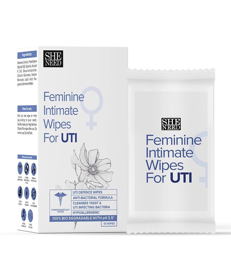 Sheneed Feminine Intimate Wipes for UTI | targets UTI, fungus & bacteria| 99% cleansing| 100% alcohol free | Ph- balanced| minimizes itching - 10 Wipes